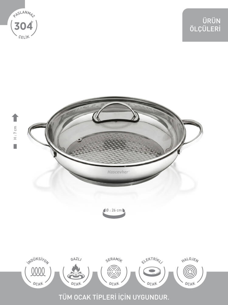 Hascevher 26x7 cm Kavurma Tenceresi Cam Kapaklı