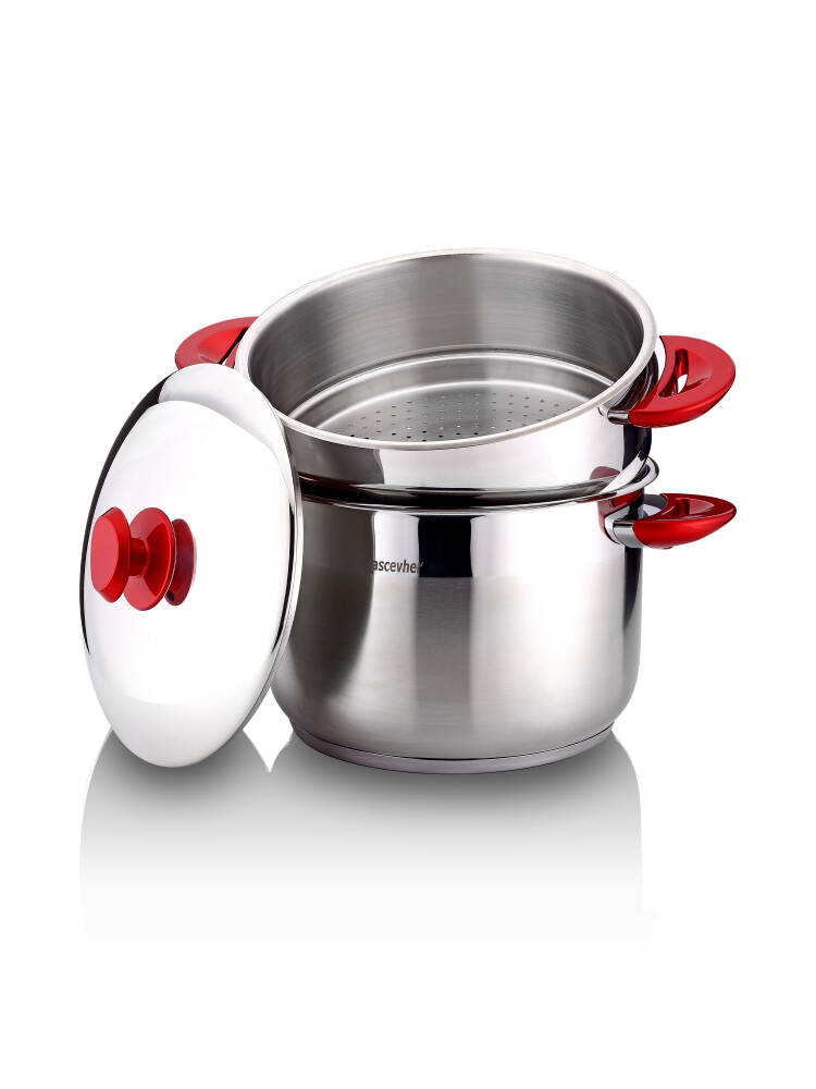 Ürün Açıklaması● Barkod: 8680465023879● Isıya dayanıklı Bakalit kulplarıyla ısı geçirgenliğini en aza indirir.● Özenle polisajlanmış parlak tencere gövdesi ve haşlama kabı ile zaman ve enerjiden tasarruf sağlar.● 304 Kalite 18/10 Cr.Ni. paslanmaz çelik ile organik pişirme deneyimi sunar.● İndüksiyon kapsül taban sayesinde ürünümüz tüm ocaklarda pişirmeye uygundur.● Özel tabanı ısıyı eşit olarak yayarak ürünlerinizin yanmasını önler ve ısıyı içerisinde tutarak tüm yüzeylerin eş zamanlı olarak pişirilmesini sağlar.● Ürüne ait özel kutusu ile sorunsuz gönderim sağlanır.