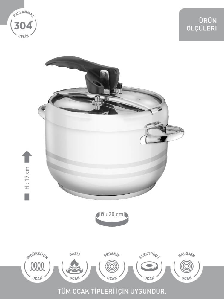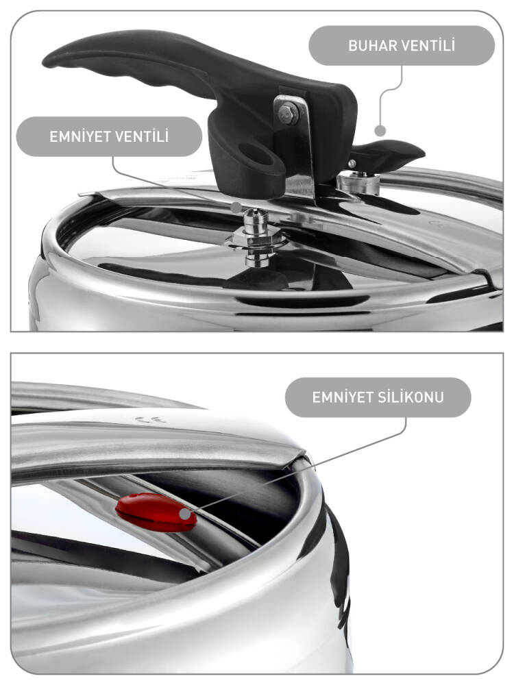 ● 3 Aşamalı güvenlik sistemine sahip düdüklü tencere kapağı ile yüksek basınçta hızlı pişirme imkanı sunar.