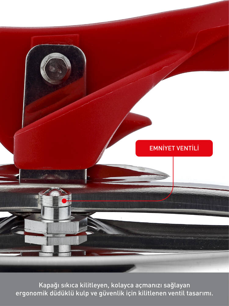 ● 3 Aşamalı güvenlik sistemine sahip düdüklü tencere kapağı ile yüksek basınçta hızlı pişirme imkanı sunar.