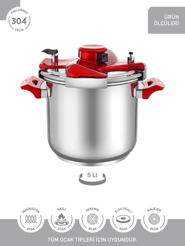 Ürün Açıklaması● Barkod: 8680465004106● Isıya dayanıklı Bakalit düdüklü kapağı kulpu ısı geçirgenliğini en aza indirir.● 4 Noktalı kapak kilit sistemine sahip Galaxy Matik düdüklü tencere kapağı ile yüksek basınçta hızlı pişirme imkanı sunar.● 304 Kalite 18/10 Cr.Ni. paslanmaz çelik ile organik pişirme deneyimi sunar.● İndüksiyon kapsül taban sayesinde ürünümüz tüm ocaklarda pişirmeye uygundur.● Özel tabanı ısıyı eşit olarak yayarak ürünlerinizin yanmasını önler ve ısıyı içerisinde tutarak tüm yüzeylerin eş zamanlı olarak pişirilmesini sağlar.● Ürüne ait özel kutusu ile sorunsuz gönderim sağlanır.