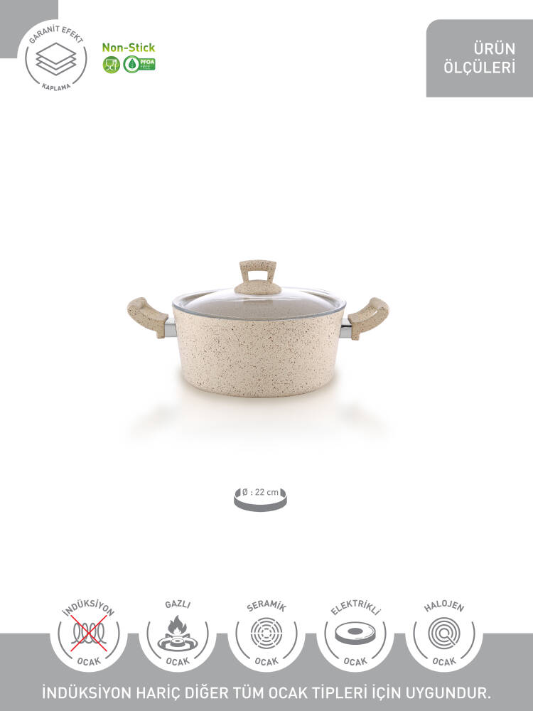 Hascevher Germanitium 22x10,5 cm Granit Tencere Cam Kapaklı
