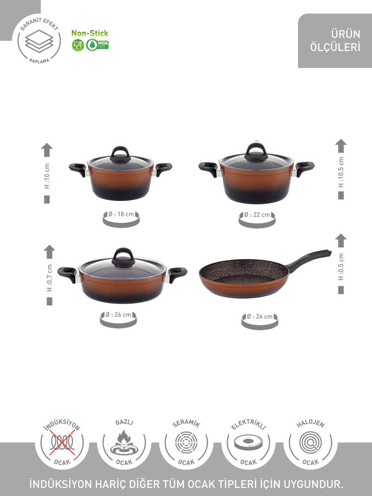 Hascevher Veronica 7 Pcs Nonstick Uygar Swiss Tencere Seti(18/22Ten/26Kar/26Tv)