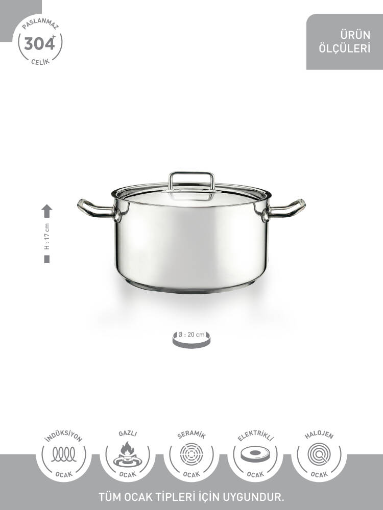 Ürün Açıklaması● Barkod: 8680465031683● Hotel, Restaurant ve Cafe'ler için özel olarak hazırlanan HORECA serisi ürünlerimiz işinizi kolaylaştırır.● Özel çelik kulpları ile şık görünüm ve maksimum dayanıklılık sağlar.● 304 Kalite 18/10 Cr.Ni. paslanmaz çelik ile organik pişirme deneyimi sunar.● İndüksiyon kapsül taban sayesinde ürünümüz tüm ocaklarda pişirmeye uygundur.● Özel tabanı ısıyı eşit olarak yayarak ürünlerinizin yanmasını önler ve ısıyı içerisinde tutarak tüm yüzeylerin eş zamanlı olarak pişirilmesini sağlar.● Ürüne ait özel kutusu ile sorunsuz gönderim sağlanır.