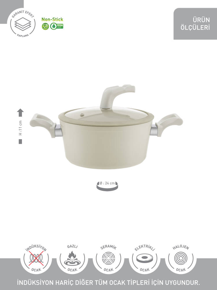 Hascevher Lizbon Seramik 24x11 cm Vega Tencere Cam Kapaklı