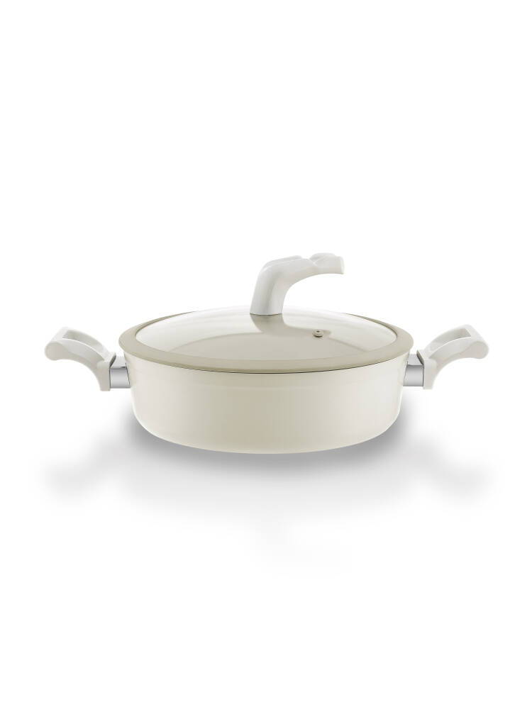 Boyut ve Kapasite: 26 cm çap ve 7,5 cm derinlik ile geniş bir pişirme yüzeyi sunar. Yayvan yapısı sayesinde yemeklerin dağılmadan pişmesini sağlar.