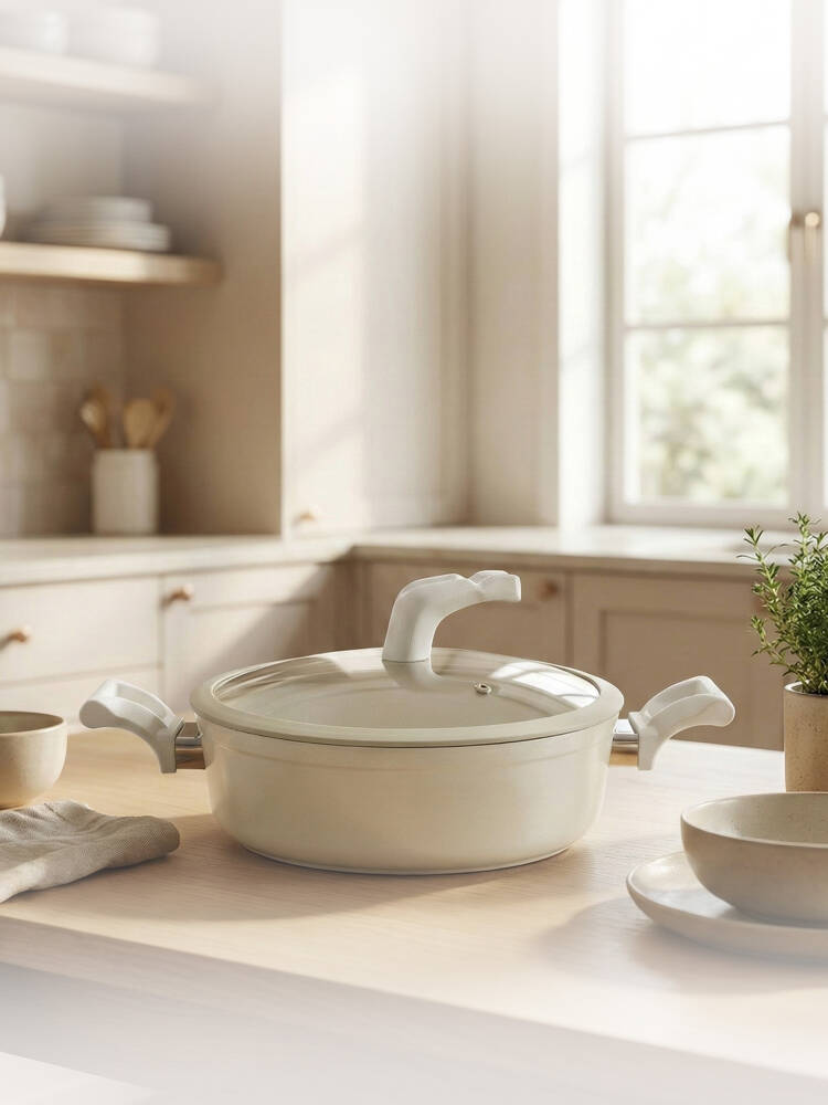 Dış Yüzey: Şık ve mutfağa aydınlık katan krem renkli emaye veya yüksek ısıya dayanıklı dekoratif kaplamaya sahiptir.