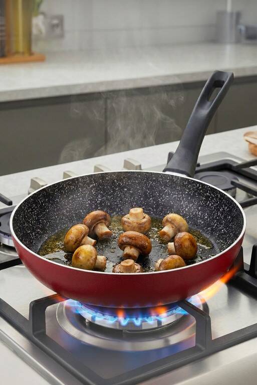 Malzeme: Granit görünümlü yapışmaz kaplamaya sahiptir. Bu kaplama, yiyeceklerin tabana yapışmasını önler ve az yağ kullanarak daha sağlıklı pişirme imkanı sunar.