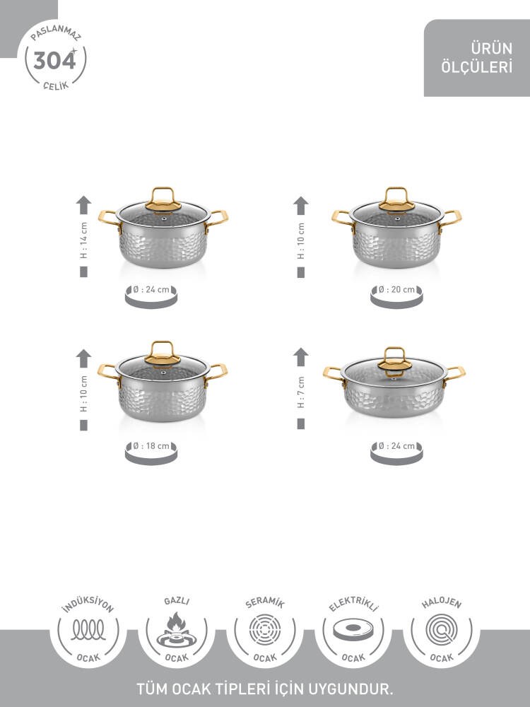 Hascevher Serra 8 Pcs Tencere Set Kaplamalı